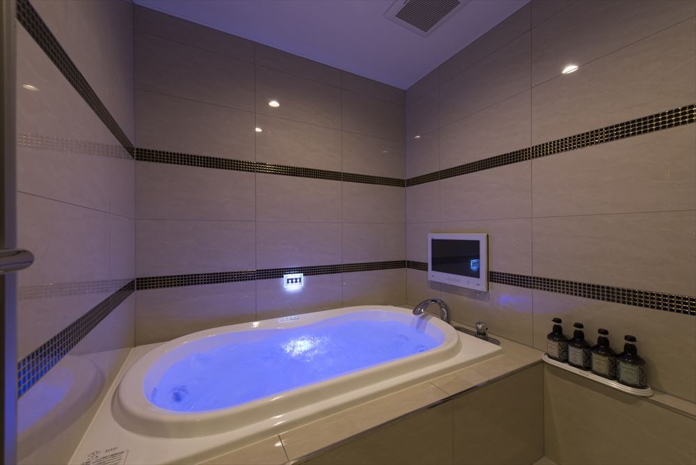 基本設備 ・VOD(最新映画など見放題)・大型液晶TV(フロントHDMI入力端子付)・ブルーレイディスクプレイヤー・客室専用無料Wifi・客室インターネット・有線放送・ルームコントローラー・スマホ用充電コンセント(USB)・シーン調光・レインボー照明・空気清浄機・持ち込み冷蔵庫・システム冷蔵庫・電子レンジ ・電気ポット・レインボーバス・ジェットバス・ブロアバス・浴室TV・シャワートイレ・ナノケアヘアードライヤー・カールドライヤー・ストレートアイロン・男性/女性化粧品・アメニティ豊富
