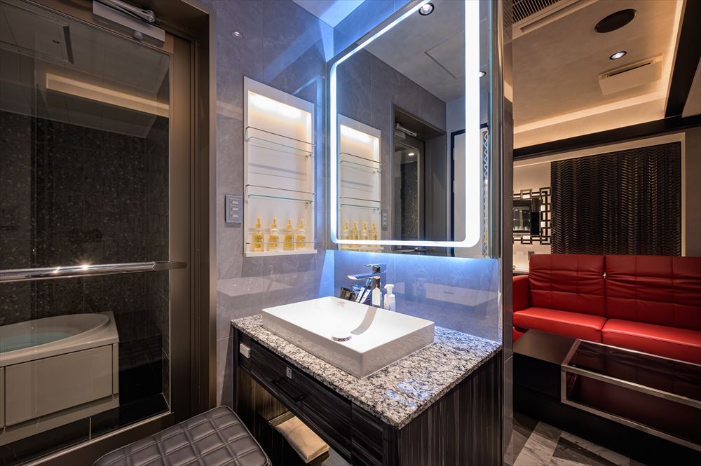VOD(最新映画など見放題)・大型液晶TV(フロントHDMI入力端子付)・客室専用無料Wifi・客室インターネット・有線放送・ルームコントローラー・スマホ用充電コンセント(USB)・シーン調光・レインボー照明・空気清浄機・持ち込み冷蔵庫・システム冷蔵庫・電子レンジ ・電気ポット・レインボーバス・ジェットバス・ブロアバス・浴室TV・シャワートイレ・ナノケアヘアードライヤー・カールドライヤー・ストレートアイロン・男性/女性化粧品・アメニティ豊富(お部屋によって一部設備が異なります。) |