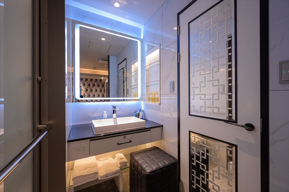 VOD(最新映画など見放題)・大型液晶TV(フロントHDMI入力端子付)・客室専用無料Wifi・客室インターネット・有線放送・ルームコントローラー・スマホ用充電コンセント(USB)・シーン調光・レインボー照明・空気清浄機・持ち込み冷蔵庫・システム冷蔵庫・電子レンジ ・電気ポット・レインボーバス・ジェットバス・ブロアバス・浴室TV・シャワートイレ・ナノケアヘアードライヤー・カールドライヤー・ストレートアイロン・男性/女性化粧品・アメニティ豊富(お部屋によって一部設備が異なります。) |