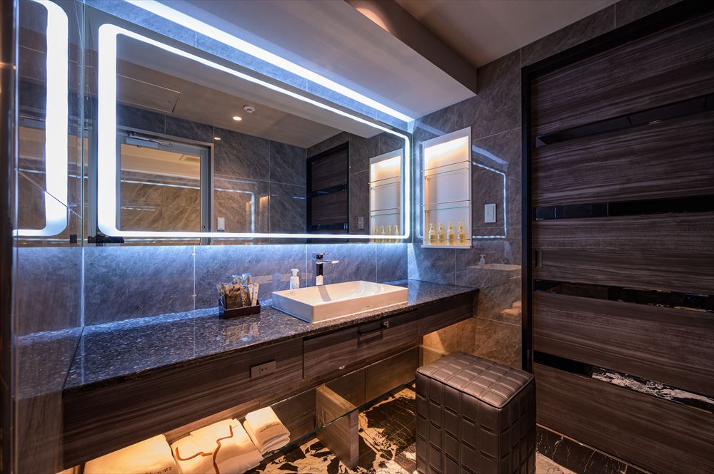 基本設備 VOD(最新映画など見放題)・大型液晶TV(フロントHDMI入力端子付)・客室専用無料Wifi・客室インターネット・有線放送・ルームコントローラー・スマホ用充電コンセント(USB)・シーン調光・レインボー照明・空気清浄機・持ち込み冷蔵庫・システム冷蔵庫・電子レンジ ・電気ポット・レインボーバス・ジェットバス・ブロアバス・浴室TV・シャワートイレ・ナノケアヘアードライヤー・カールドライヤー・ストレートアイロン・男性/女性化粧品・アメニティ豊富(お部屋によって一部設備が異なります。)