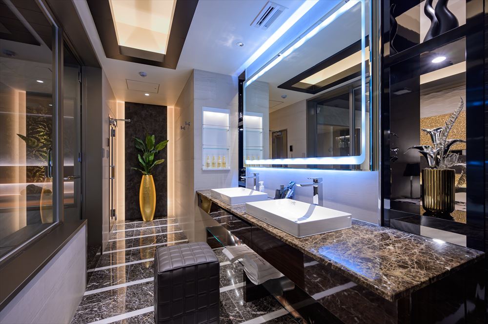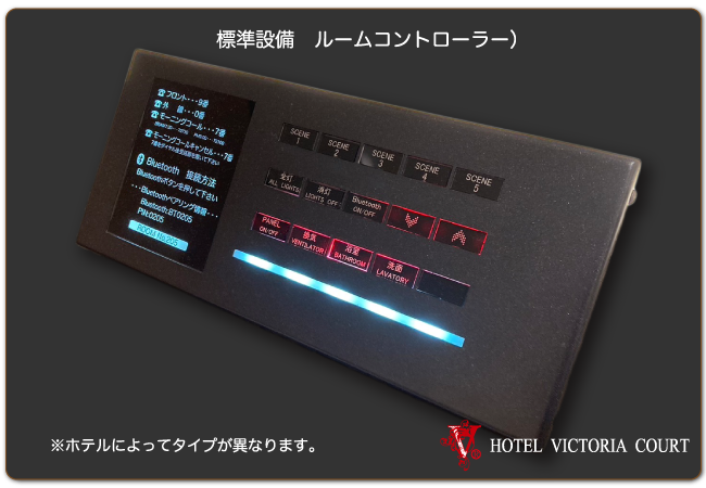 VOD(最新映画など見放題)・大型液晶TV(フロントHDMI入力端子付)・客室専用無料Wifi・客室インターネット・有線放送・ルームコントローラー・スマホ用充電コンセント(USB)・シーン調光・レインボー照明・空気清浄機・持ち込み冷蔵庫・システム冷蔵庫・電子レンジ ・電気ポット・レインボーバス・ジェットバス・ブロアバス・浴室TV・シャワートイレ・ナノケアヘアードライヤー・カールドライヤー・ストレートアイロン・男性/女性化粧品・アメニティ豊富(お部屋によって一部設備が異なります。) |