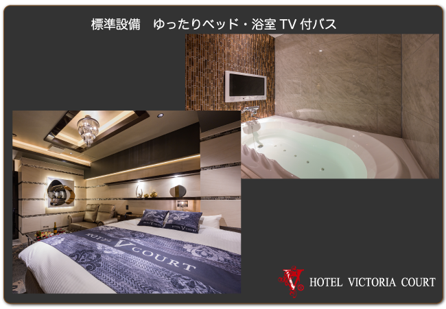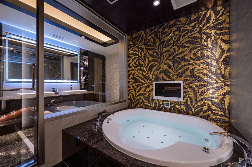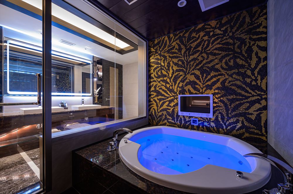 全てのお部屋に豪華設備をご用意しております。大型ベッドやジャグジーバス、VODや室内専用アクセスポイントもございます。