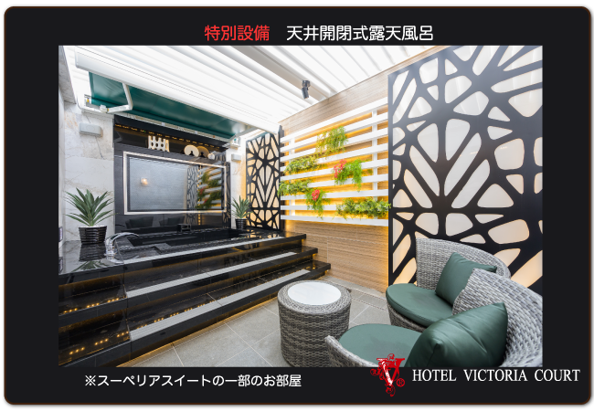 天井開閉式の露天風呂付のお部屋もございます。(スーペリアスイートの一部)