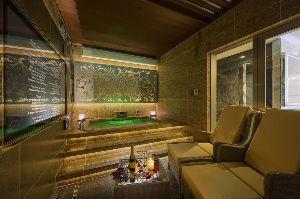 天井開閉式の露天風呂付のお部屋もございます。(スーペリアスイートの一部)