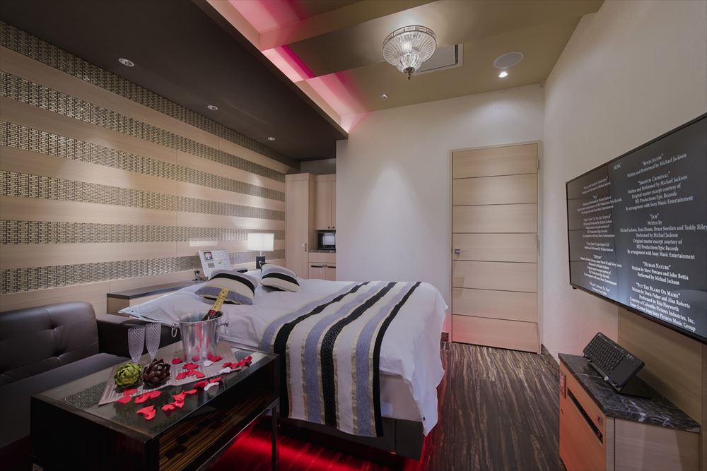 VOD(最新映画など見放題)・大型液晶TV(フロントHDMI入力端子付)・ブルーレイディスクプレイヤー・客室専用無料Wifi・客室インターネット・有線放送・ルームコントローラー・スマホ用充電コンセント(USB)・シーン調光・レインボー照明・空気清浄機・持ち込み冷蔵庫・システム冷蔵庫・電子レンジ ・電気ポット・レインボーバス・ジェットバス・ブロアバス・浴室TV・シャワートイレ・ナノケアヘアードライヤー・カールドライヤー・ストレートアイロン・男性/女性化粧品・アメニティ豊富(お部屋によって一部設備が異なります。) |