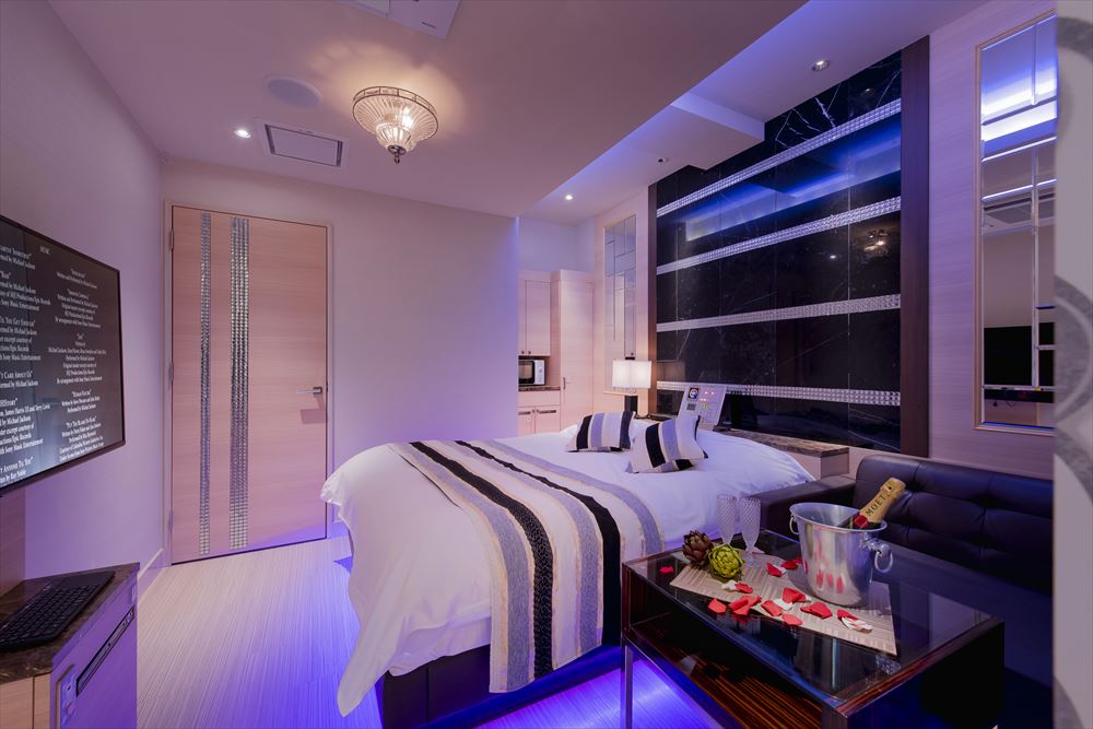 VOD(最新映画など見放題)・大型液晶TV(フロントHDMI入力端子付)・ブルーレイディスクプレイヤー・客室専用無料Wifi・客室インターネット・有線放送・ルームコントローラー・スマホ用充電コンセント(USB)・シーン調光・レインボー照明・空気清浄機・持ち込み冷蔵庫・システム冷蔵庫・電子レンジ ・電気ポット・レインボーバス・ジェットバス・ブロアバス・浴室TV・シャワートイレ・ナノケアヘアードライヤー・カールドライヤー・ストレートアイロン・男性/女性化粧品・アメニティ豊富(お部屋によって一部設備が異なります。) |